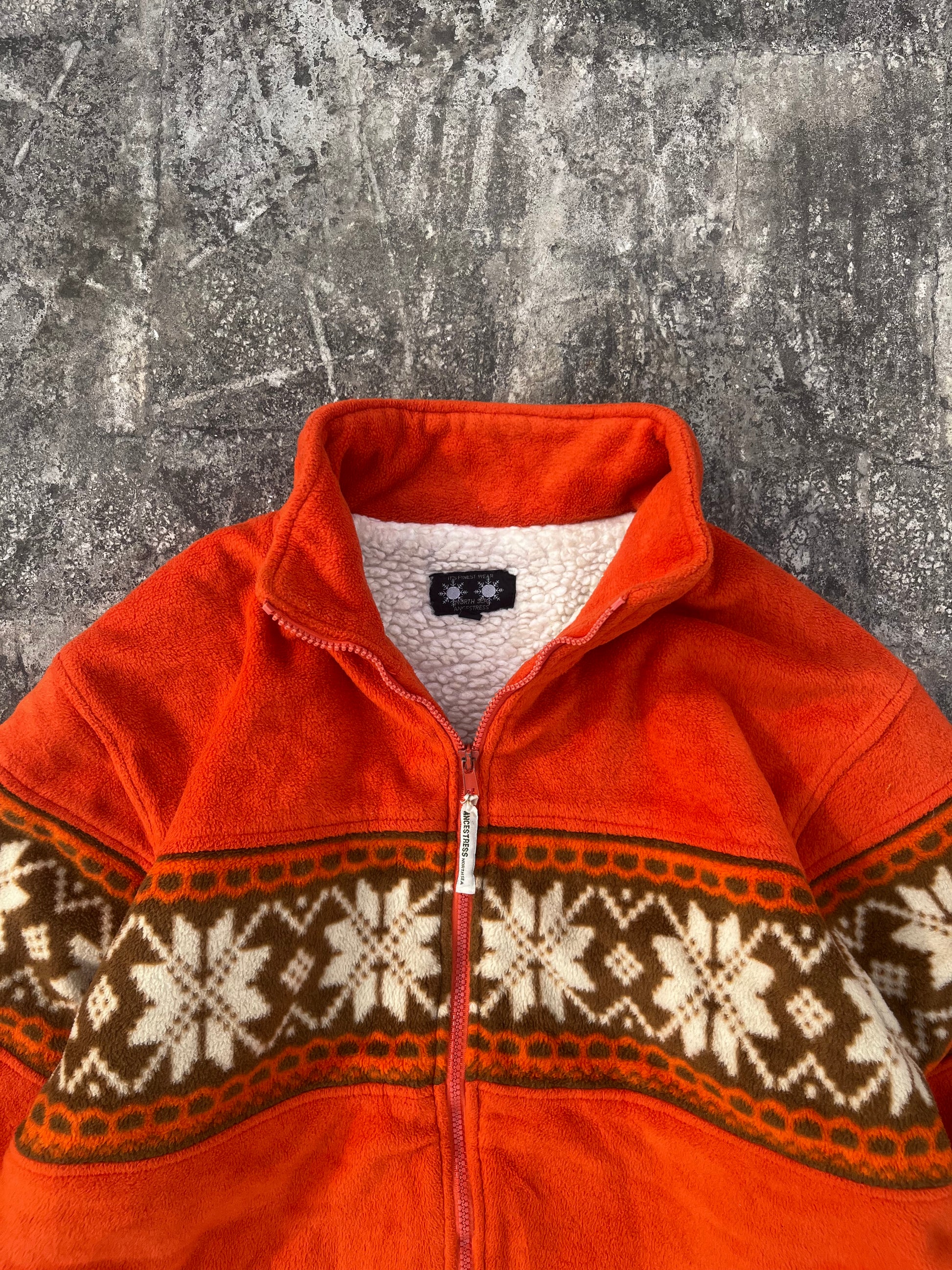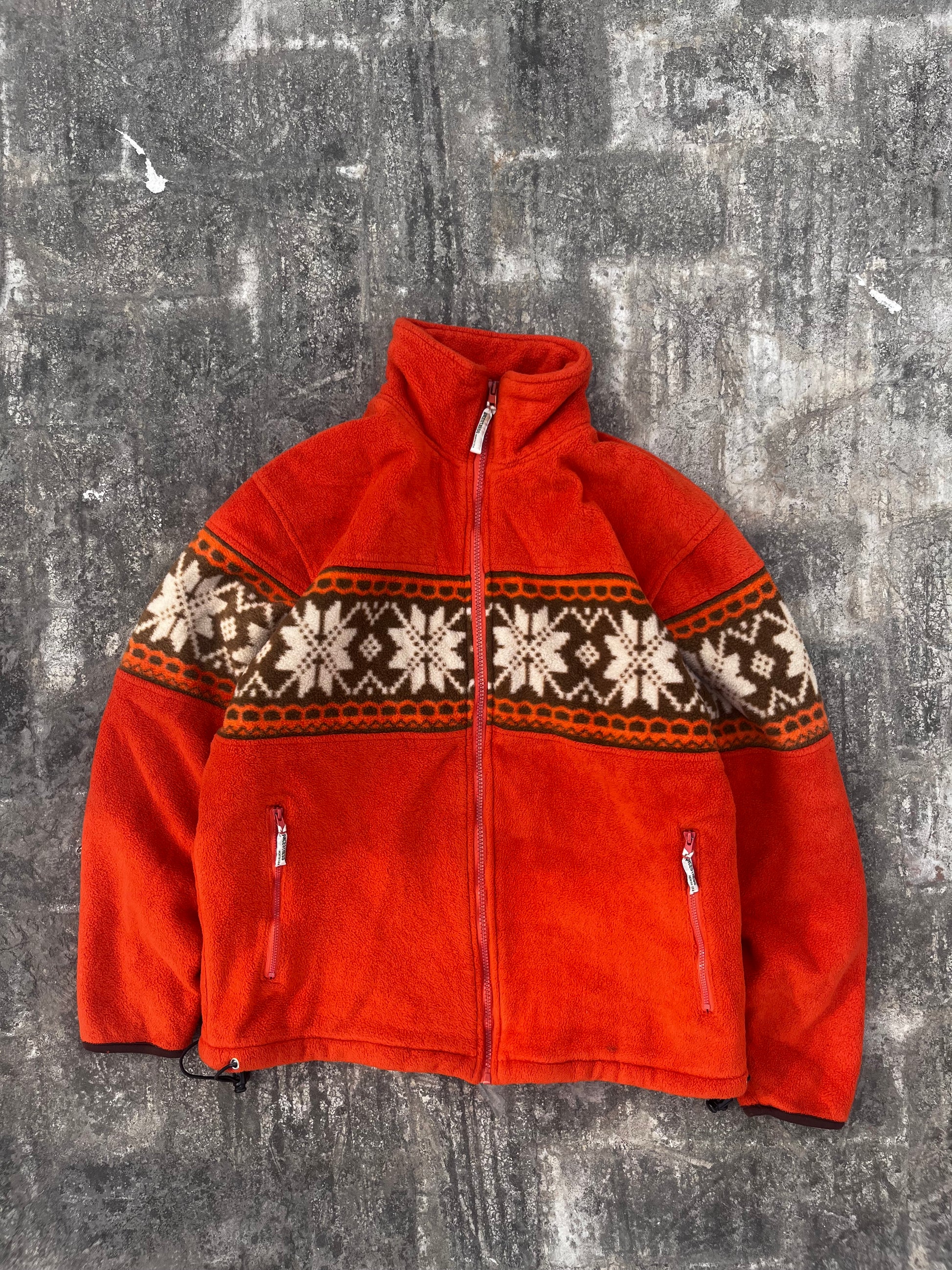 Vintage Ancestress North Sea Orange Fleece Christmas Snowflake Jacket (S/M)